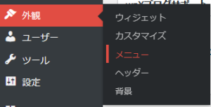 まずはフッターメニューを作るのだ。管理画面の「外観」→「メニュー」を開く。